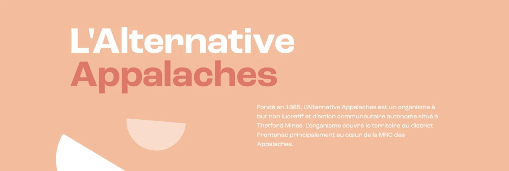 L’Alternative Appalaches est un organisme communautaire de Thetford Mines qui offre des solutions en justice alternative, gestion des différends et prévention du décrochage scolaire. Sa mission repose sur la prévention, l’accompagnement, la réparation et la responsabilisation des jeunes et des adultes de la région. L’organisme propose notamment des mesures de rechange, de la médiation citoyenne et scolaire, ainsi que du soutien aux jeunes suspendus de l’école.